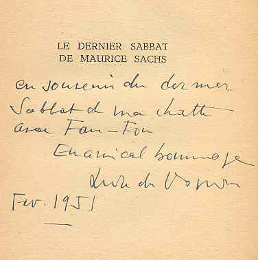 DONNAY, Maurice. (1859-). Homme de théâtre hétéro, qui démarra au Chat Noir, je le mets ici pour son Mon Journal, 1919-1939. Non pas qu'il y ait beaucoup de faits lesbigais, mais ce membre de la grande famille des Daudet, Proust etc etc qui truste un peu la littérature de l'entre deux guerre -le fils de Léon Daudet est son petit cousin- est un témoin du temps et a fréquenté Hann, Gérard D'Houville, ..., et surtout Abel Herman, dont il suit la longue attente pour rentrer à L'Académie Française. Même si je pense que ce journal est expurgé notons cette farce très significative de l'époque souvent répétée : " 27 Mars 1932. Sur la route, nous croisons deux singuliers jeunes gens : tête nue, grosses culottes bouffantes, allure spéciale. Et Mme Grevel nous raconte que, hier, chez Mme P..., l'aubergiste, deux jeunes gens se sont présentés pour loger. Mme P..., très embarrassée, leur a dit : "Je ne sais pas si j'aurai des chambres; j'attends une dépêche que doivent m'envoyer des dames de Paris. -Bien ont dit les jeunes gens; nous allons faire un tour dans le pays. -Vous avez de drôles de clients, a dit alors à Mme P... Mme Grevel, qui assistait à la scène. -N'est-ce-pas? C'est ce que je me disais. Ils ont l'air pas ordinaire. -Vous pouvez le dire; il n'y a pas de doute, ce sont deux pédérastes. -Deux quoi ? -Deux pédérastes. -Qu'est-ce c'est que ça ? - Des hommes qui couchent ensemble. -Ah ! s'est écriée Mme P... Quelle chance ! Je n'ai qu'une chambre! " (p 235). C'est dans ces années que les gens ont l'impression de "voir" beaucoup d'homosexuels : " Le vice grec est très répandu parmi les hommes; il y a bien plus de "ces messieurs" qu'avant guerre". 19 mars 1919. (p 16). " Nous attendons l'âme soeur; beaucoup de messieurs, aujourd'hui, attendent l'âme tante." 2 déc 1927." (p 190). "Aujourd'hui, La Fontaine écrirait : "Deux vrais amis vivaient au Monomotapette". 12 Oct 1932." (p 240). Paris: Arthème Fayard, 1953, 287p. |