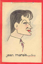 sincérité de ses souvenirs d'enfant « paresseux, v « Nous allons partir en voyage (Ma bouche l'a lu dans ta main) Si tu m'aimes j'aurai ton âge Ton rythme, ton ciel, ton chemin ». Poche, 1976. Contes de Jean Marais. voir aussi : COCTEAU, Jean. Lettres à Jean Marais. Livres de l'auteur, et ces deux caricatures en vente sur notre site. |